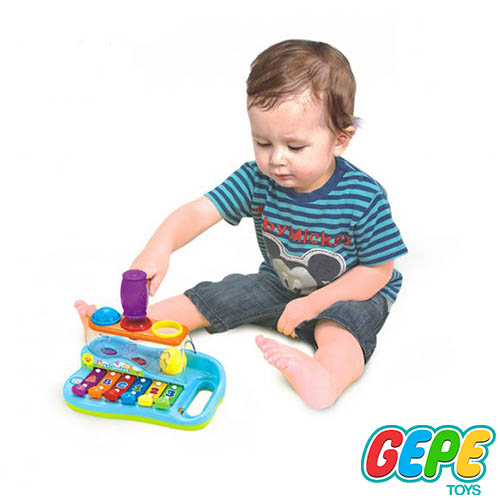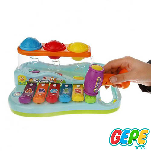 با این محصول هولی تویز میتونین به صورت محدودی زبان انگلیسی و اعداد رو به کودکان آموزش بدین. یه قسمت در این اسباب بازی تعبیه شده که جایگاه قرار گیری سه عدد توپ رنگی هست و با چکشی که در بسته ی این محصول قرار داره میتونین توپ ها رو به پایین بندازین و کودک بر اساس رنگ توپ و رنگ جایگاه؛ توپ ها رو در جای مناسب خودشون قرار بده، این کار باعث تقویت مهارت رنگ شناسی و شکل شناسی در کودکان میشه.