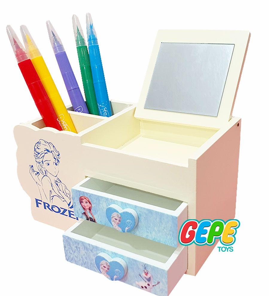 جعبه چوبی فروزن مدل جاقلمی یه محصول چندکاره از جنس چوب درجه یک مناسب برای سازماندهی وسایل بچه هاست. این جعبه چوبی با تم فروزن طراحی و تولید شده و یه آیتم مناسب برای بچه هاییه که عاشق این شخصیت و کاراکترهای اون هستن. این جعبه به جز کشوهایی برای قرار دادن وسایل، دارای آینه و جاقلمی هم هست.