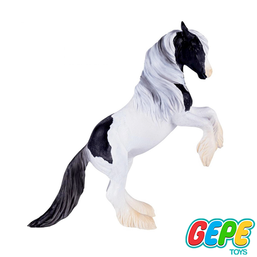 فیگور اسب جیپسی یک فیگور با کیفیت بالاست که الهام گرفته شده از اسب ابلق سیاه و سفید جیپسی است که در حالت ایستاده بر روی دو پا قرار دارد. این فیگور از مواد اولیه درجه یک و با کیفیت بالایی ساخته شده. اسب های تینکر اگر چه قد کوچکی دارند ولی عضلانی و قوی هستند. جنس پلاستیکی با کیفیت و غیر رسمی این فیگور، آن را برای بازی کودکان بیخطر میکند. در عین حال دوام بالا و مقاومت در برابر ضربه، آن را به یک اسباب بازی ماندگار تبدیل کرده است. فیگور حیوانات اهلی و وحشی، از جمله این مدل اسب جیپسی، به کودک شما اجازه میدهد در دنیای خیال خود مزرعهای بسازد، نقش دامدار یا دامپزشک را بازی کند و با دوستانش داستان پردازی کند. این بازیهای نقش آفرینی باعث رشد خلاقیت، تقویت زبان، درک زیست محیطی و شناخت رفتار حیوانات میشود. به طور کلی، اسب جیپسی یه نژاد اسب زیبا، سریع و با استقامت بالاست که برای مسابقات و همچنین استفاده در تمرینات و آموزشهای مختلف بسیار مناسبه.
