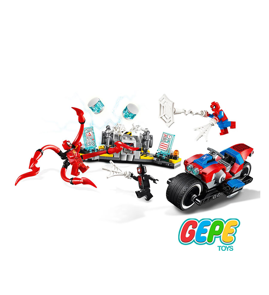 وصل کردن قطعات لگو به همدیگه و ساخت موتور مرد عنکبوتی و حمله به شرورها، همه و همه در این بسته ی لگو بازی.