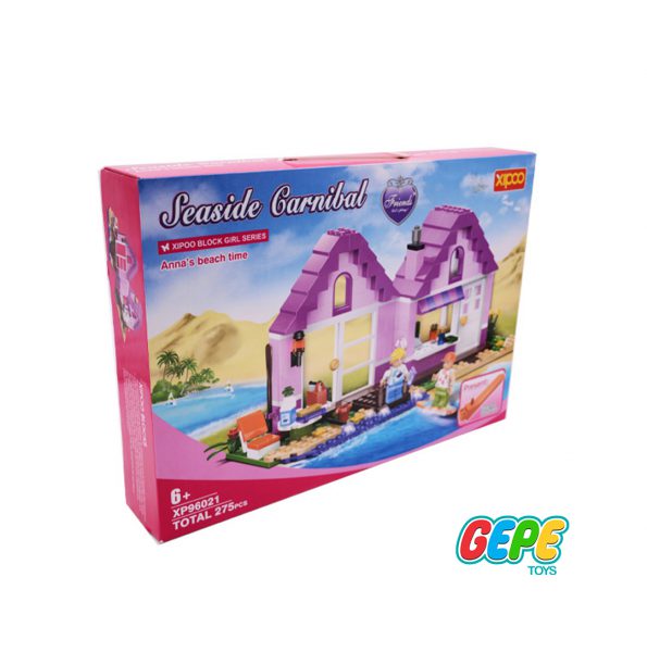 دهکده ی ساحلی که این بسته ی لگو بازی به شما هدیه میده، یه ساختمون سفید و صورتی، کلی وسیله ی جانبی و دوتا مینی فیگور داره.