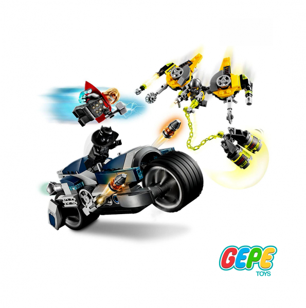 این لگو یک ست ساختنی هیجان‌انگیز از دنیای مارول است که دو ابرقهرمان محبوب، بلک پنتر و تور را همراه با موتورهای قدرتمندشان به تصویر می‌کشد. این مجموعه شامل دو مینی‌فیگور دقیق و زیبا از این قهرمانان، به همراه جزئیات جذابی روی موتورهاست که حس واقعی تعقیب و گریز را به بازیکنان منتقل می‌کند.